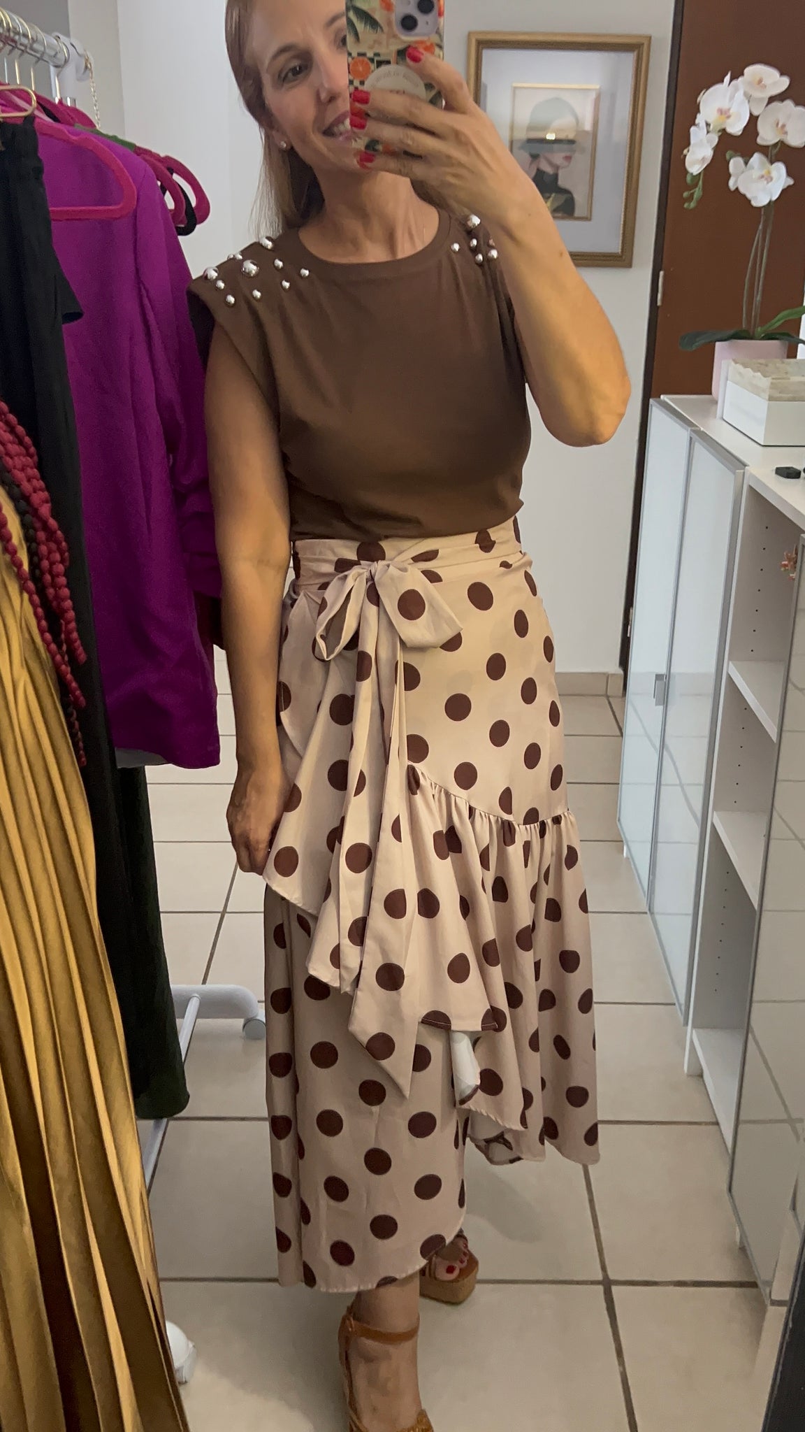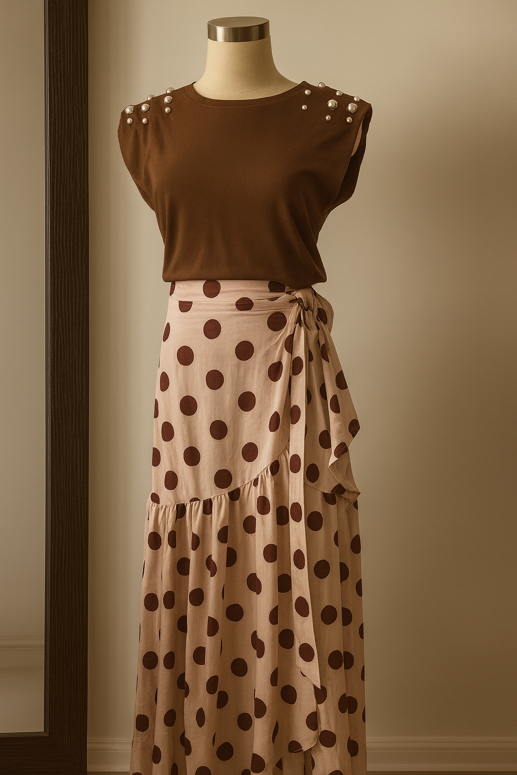 Beige & Chocolate Polka Dot Wrap Skirt – Classic with a Twist