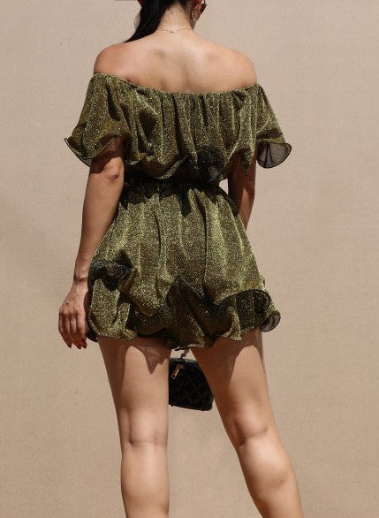 Stretch Off Shoulder Romper - Gold